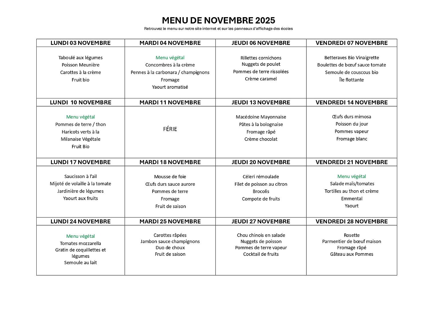 Menus Les menus du restaurant scolaire sont créés et réalisés sur place par le chef cuisinier et son équipe.